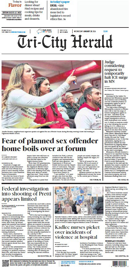 Tri-City Herald | Front Page | Above-the-Fold | Print Edition | January 21, 2026