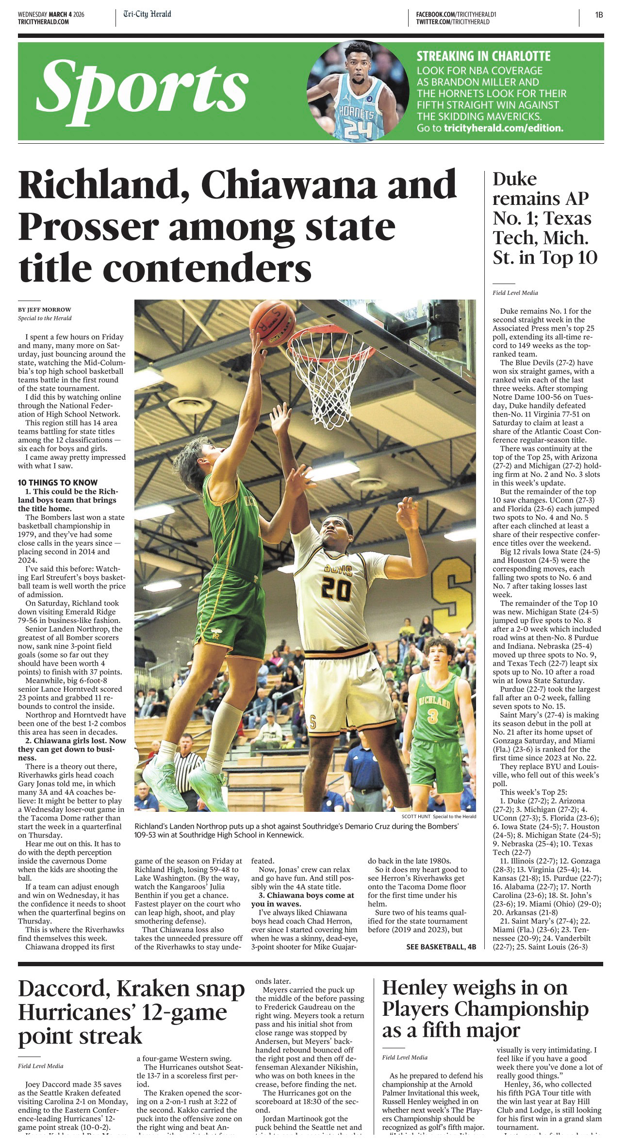 Tri-City Herald | Cover Sports Section | Print Edition | February 1, 2026