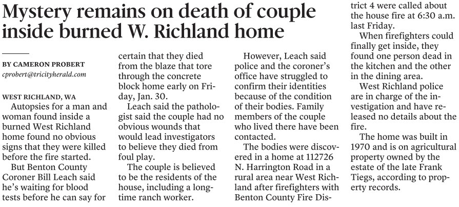 Crime Scene of Murder-Suicide, Prosser, WA