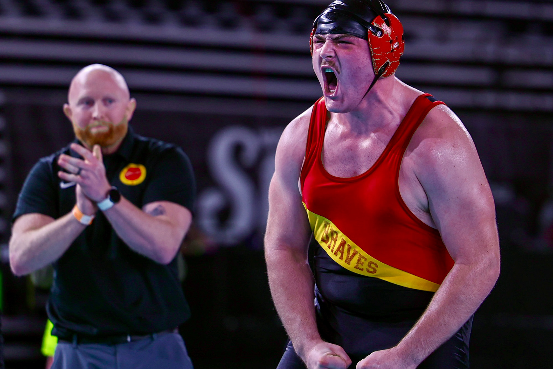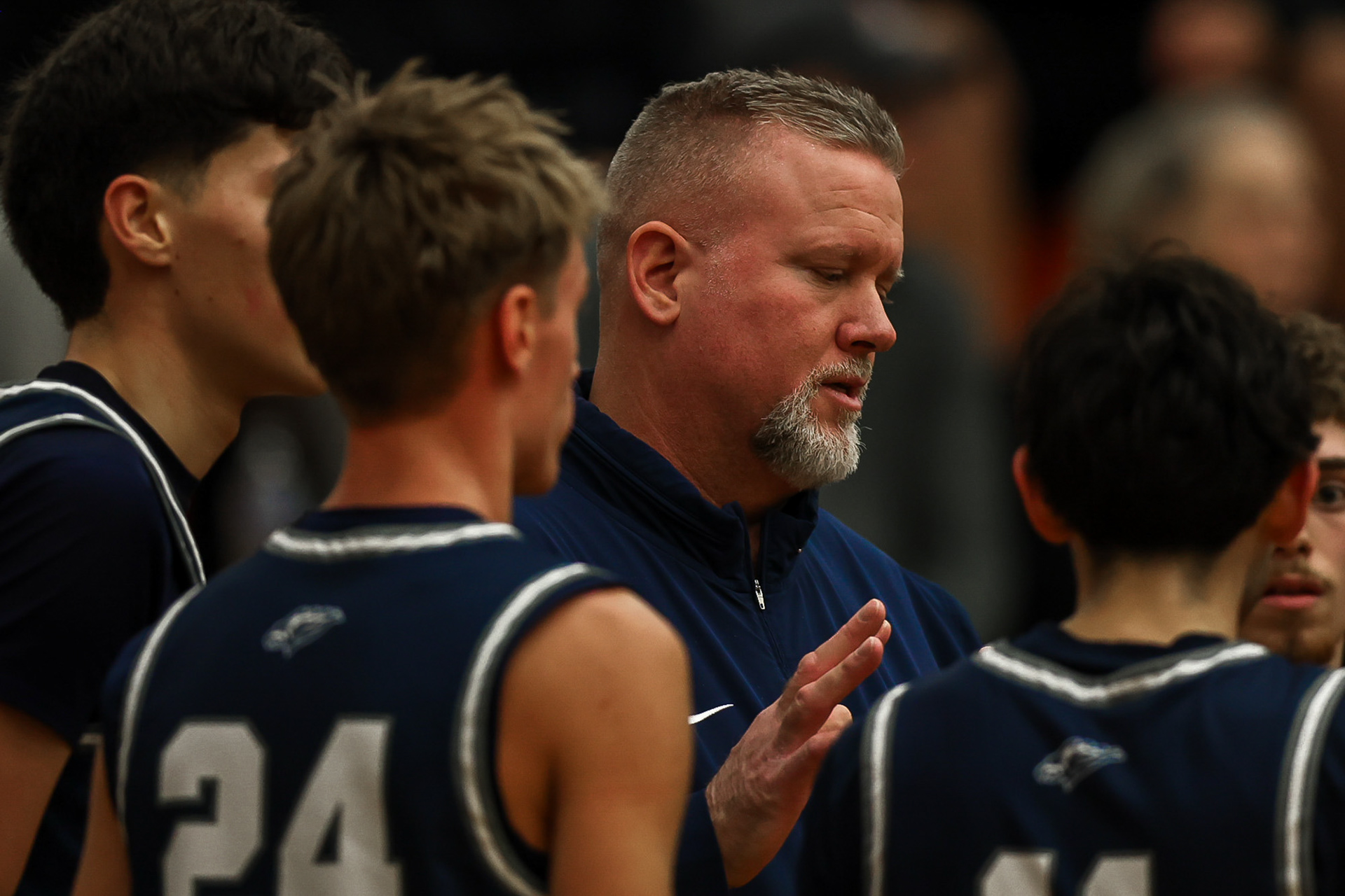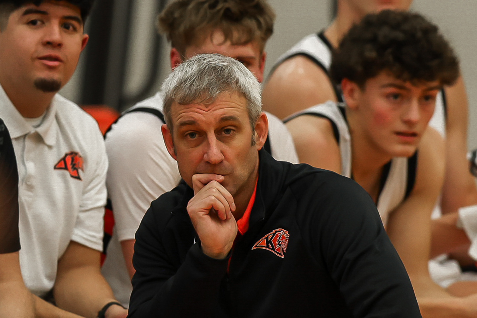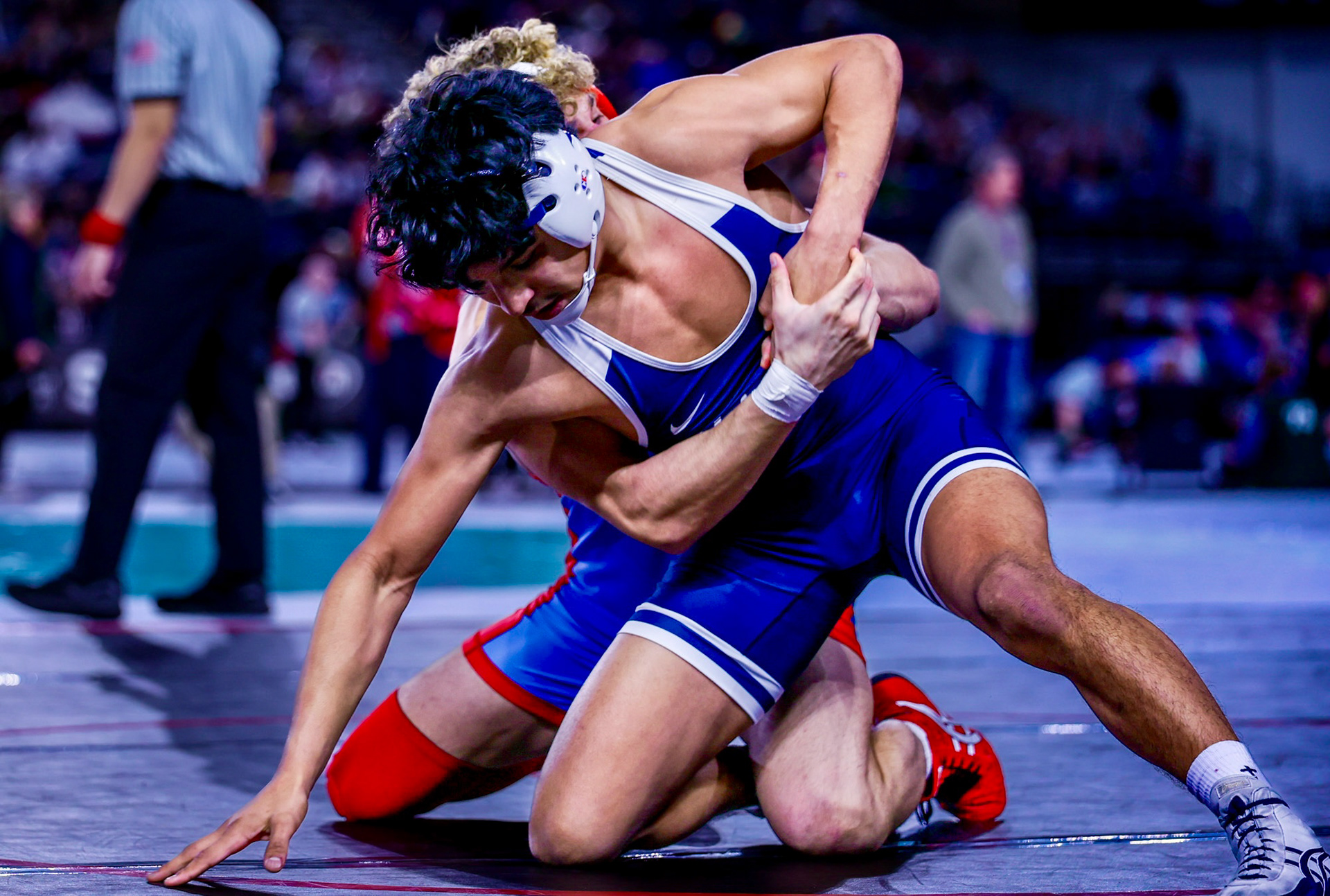 A Richland High School lineman prepares to snap the ball during a home game against Southridge in Richland, Washington.