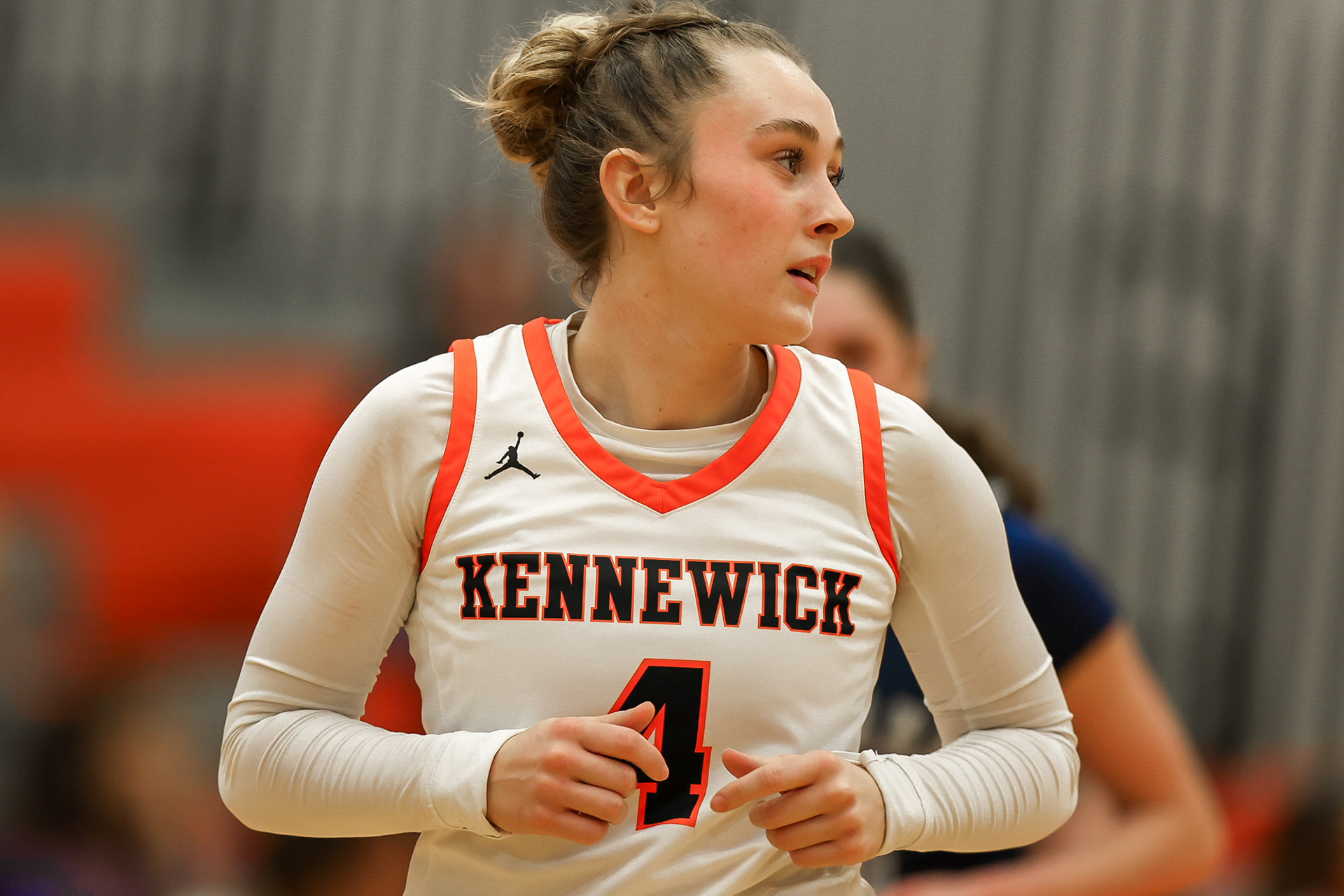 A Richland High School midfielder advances the ball downfield during a home match in Richland, Washington.